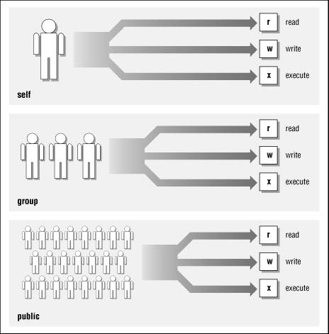 - Execute-only. Anyone can execute the file (run the program). Only the file owner and the system administrator can read or write it.