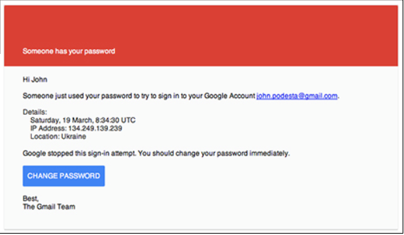above) informed Podesta that a sign-in attempt from an IP address in Ukraine was thwarted and that, “You