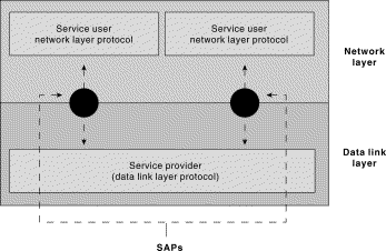 Figure 1-5: Service Users, Providers, and SAPs Interact at the Network and Data Link Layers