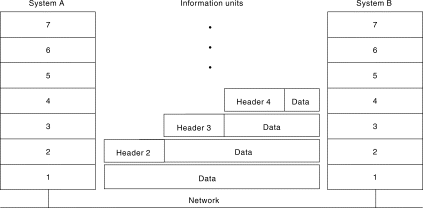 The physical layer in System B receives the information unit and passes it to the data link layer. The data link layer in System B then reads the control information contained in the header prepended by the data link layer in System A. The header is then removed, and the remainder of the information unit is passed to the network layer. Each layer performs the same actions: The layer reads the header from its peer layer, strips it off, and passes the remaining information unit to the next highest layer. After the application layer performs these actions, the data is passed to the recipient software application in System B, in exactly the form in which it was transmitted by the application in System A.