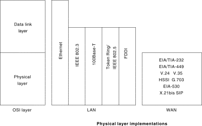 Figure 1-7: Physical Layer Implementations Can Be LAN or WAN Specifications