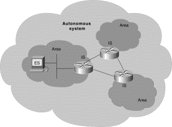 An ES is a network device that does not perform routing or other traffic forwarding functions. Typical ESs include such devices as terminals, personal computers, and printers. An IS is a network device that performs routing or other traffic-forwarding functions. Typical ISs include such devices as routers, switches, and bridges. Two types of IS networks exist: intradomain IS and interdomain IS. An intradomain IS communicates within a single autonomous system, while an interdomain IS communicates within and between autonomous systems. An area is a logical group of network segments and their attached devices. Areas are subdivisions of autonomous systems (AS's). An AS is a collection of networks under a common administration that share a common routing strategy. Autonomous systems are subdivided into areas, and an AS is sometimes called a domain. Figure 1-12 illustrates a hierarchical network and its components.