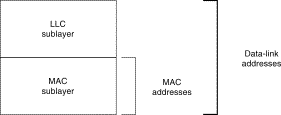 Media Access Control (MAC) addresses consist of a subset of data link layer addresses. MAC addresses identify network entities in LANs that implement the IEEE MAC addresses of the data link layer. As with most data-link addresses, MAC addresses are unique for each LAN interface. Figure 1-14 illustrates the relationship between MAC addresses, data-link addresses, and the IEEE sublayers of the data link layer.