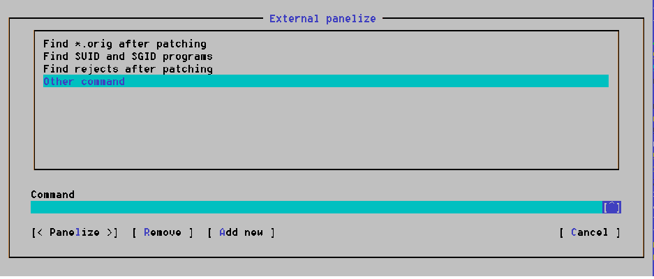 The External panelize (shortcut Ctrl-X ! ) allows you to execute an external program, and make the output of that program the contents of the current panel. This is one of the most innovative features in mc, the feature that was not present in earlier OFMs. Here is how dialog box for the command looks like in mc 4.8