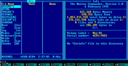 of Norton Commander (NC) written by John Socha and first released in 1986 for MS DOS. Despite Spartan