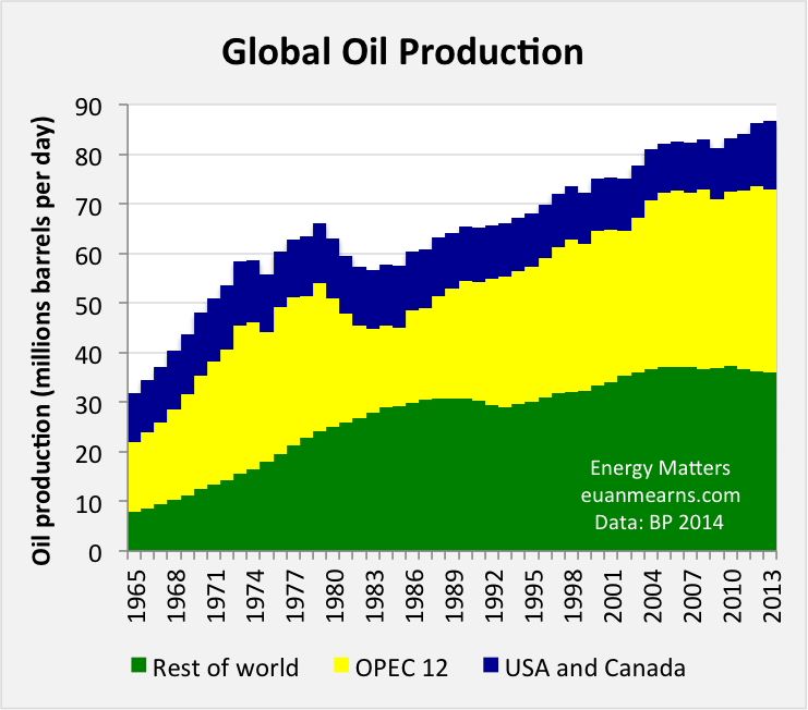 In this sense 2010-2013 were gold age for oil production worldwide, as prices were close or above $100 and billions were invested